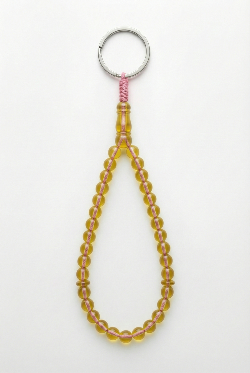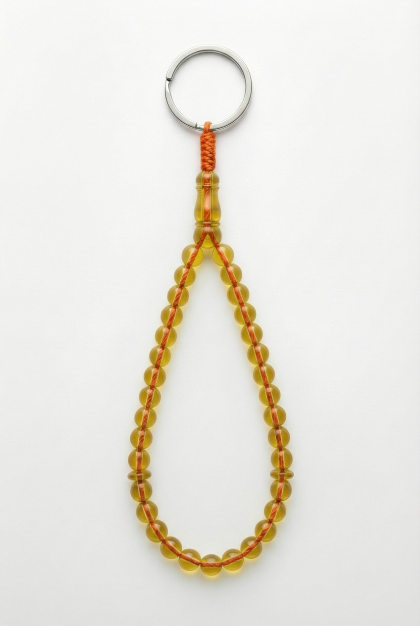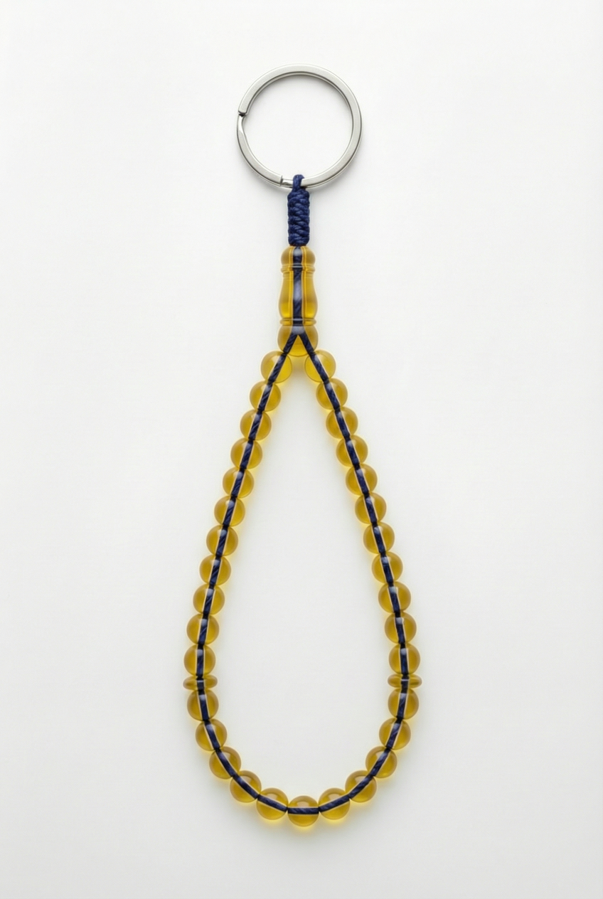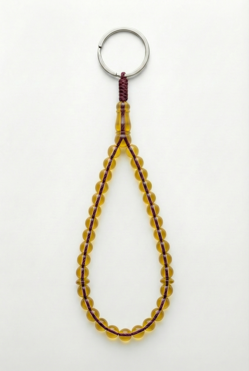 سلسلة مفاتيح من العنبر - ممتدة + شاهد وفواصل (31 خرزة)